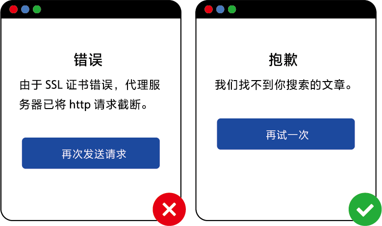 在用户可能感到沮丧的情况下不要幽默。例如,如果你的应用与旧设备不兼容,请不要用有趣的方式说出来,因为此时用户可能很沮丧,无法感知幽默。