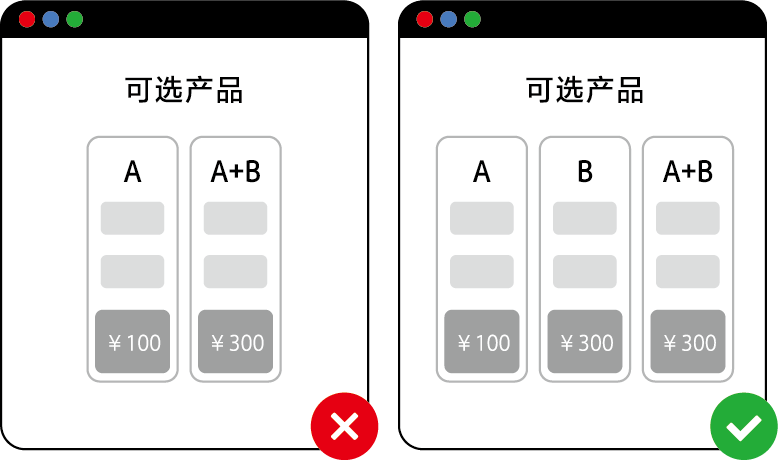 假设有产品 A 和 B,以下是顾客可以选择的选项: