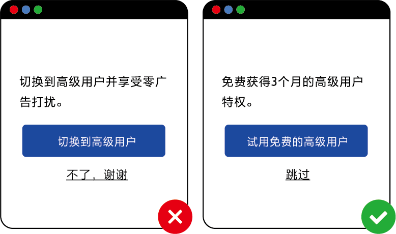 当你与用户“争论”他的选择时要小心,说服对方时必须循循善诱,永远不要与用户直接对抗。