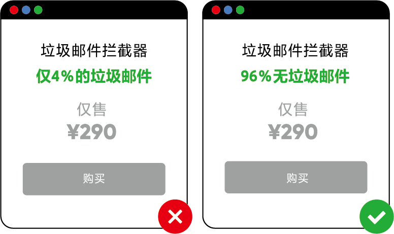在竞争对手旁边展示你的产品优势,以便用户注意到差异,即使是一个很小的差异。