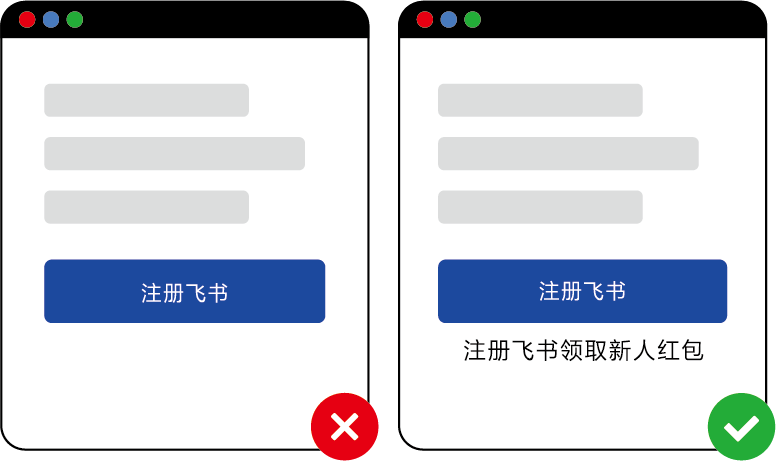 CTA 按钮应在其旁边包含信息性标签,以清除不确定性。