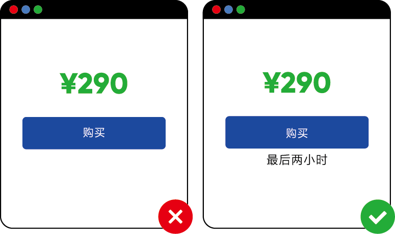 限制特价交易的时间以产生紧迫感:“此优惠在x小时内结束”。