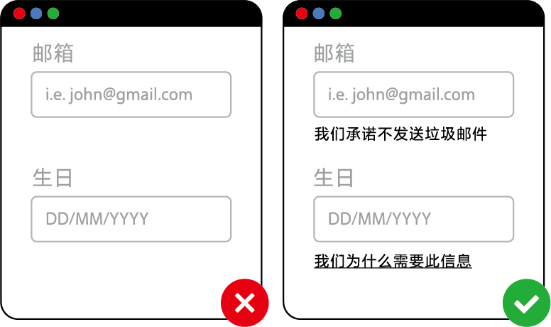 在购买或注册前让用户对产品产生尽可能的安全感,让他们获得信心和信任。